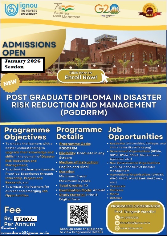 The Fresh Admission for the January, 2026 session for the notified programmes offered in ODL and Online modes commenced from 16th December, 2025 on the Samarth Portal. Samarth Portal may be referred for the notified Programmes. The last date of Fresh Admissions for the January, 2026 Session is 31st January, 2026.